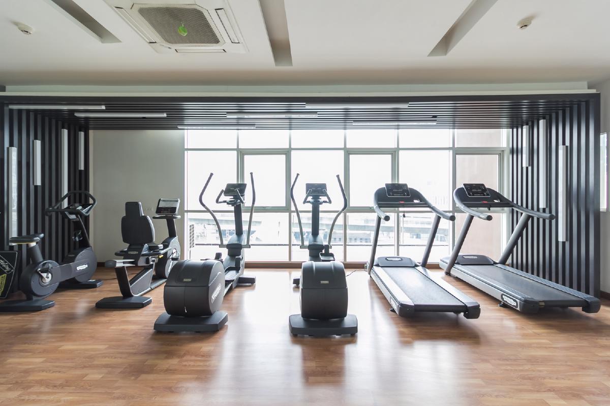 ส่วนห้องฟิตเนสที่อยู่ติดๆกันก็จะมีเครื่องออกกำลังกายหลายเครื่อง ทั้งลู่วิ่งไฟฟ้า , เครื่องปั่นจักรยาน ฯลฯ
