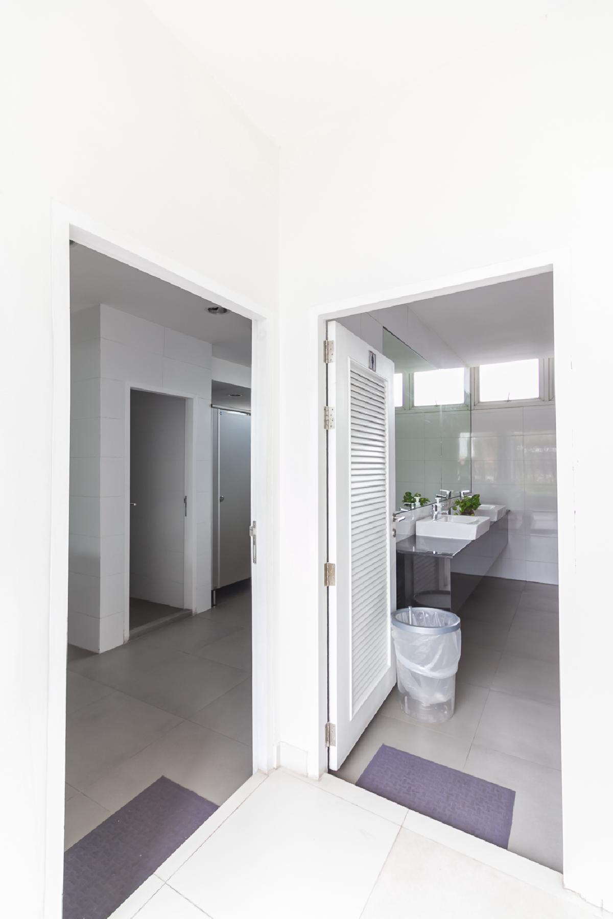 ถัดจากห้องฟิตเนสจะเป็นห้องน้ำแยกชายหญิง