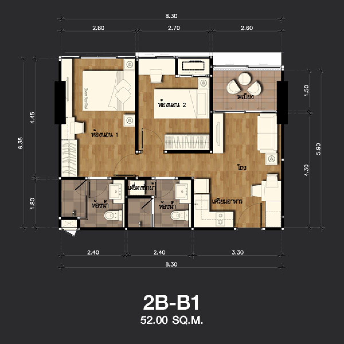 Show room ห้องตัวอย่างแบบ 2 ห้องนอน ขนาด 52 ตารางเมตร