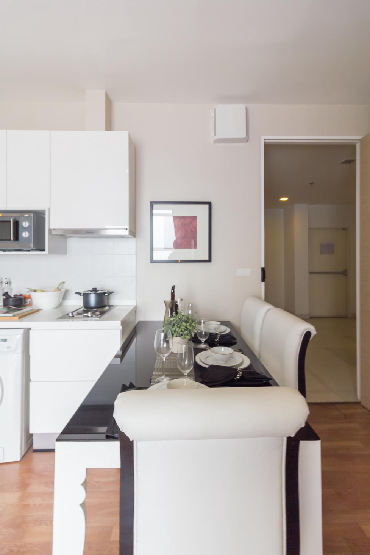 โต๊ะทานข้าววางขวางใกล้กับโซนครัว เพื่อความเป็นสัดส่วน