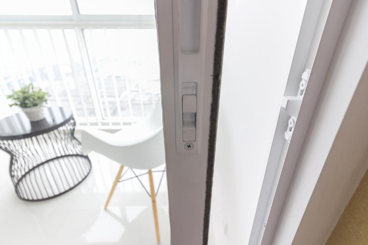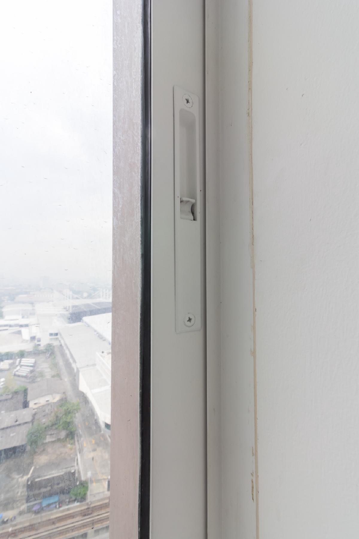 หน้าต่างระเบียงมีตัวล็อกสามารถเปิดรับลมธรรมชาติได้