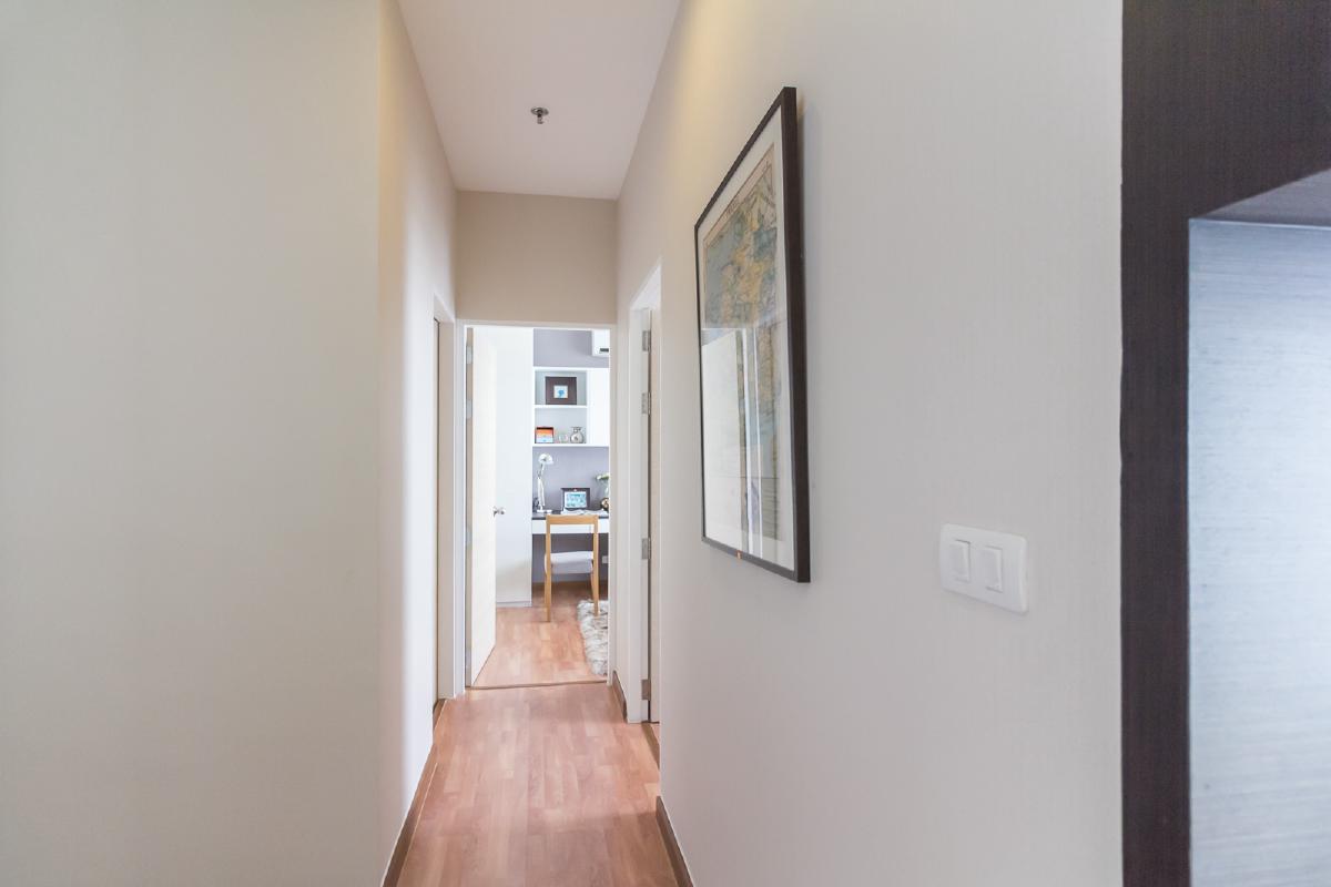 ทางเดินสู่ห้องนอนและห้องน้ำ โดยห้องนอนใหญ่จะอยู่ตรงกลาง ห้องนอนเล็กจะอยู่ทางขวา และทางซ้ายจะเป็นห้องน้ำ