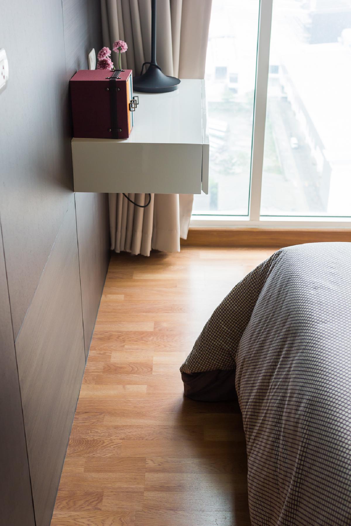 หัวเตียงยังมีชั้นวางของแบบลอยตัวอีก 1 ชิ้น ไว้สำหรับวางโทรศัพท์ นาฬิกาปลุก ฯลฯ