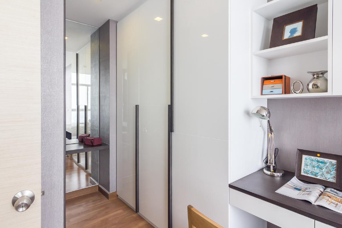 ด้านซ้ายจะมีตู้เสื้อผ้าแบบ Built in และ มุมแต่งตัว