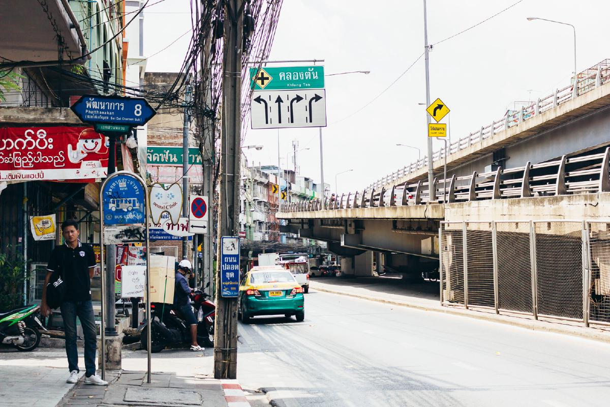 เพียงเดินออกมาไม่กี่ก้าวเท่านั้น เดินมาทางขวามือของโครงการไม่กี่ร้อยเมตรก็จะถึงป้ายรถเมล์