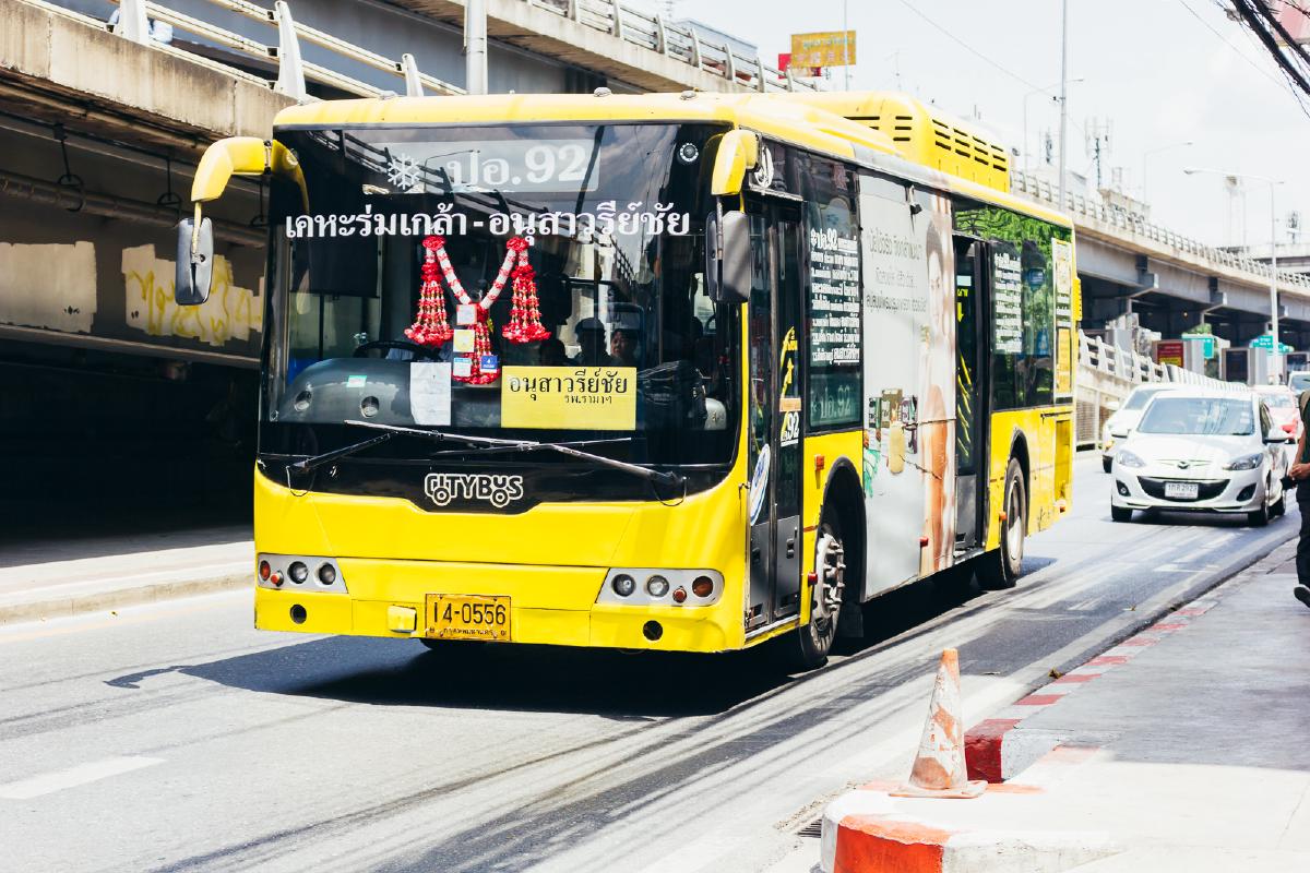 รถเมล์มีหลายสายที่ผ่านเส้นนี้ สามารถดูสถานที่ไปได้จากป้ายหน้ารถ-ข้างรถ ซึ่งสายปอ. 92 จะผ่านบ่อยที่สุด มุ่งหน้าไปยังอนุสาวรีย์ชัย โดยสามารถดูเส้นทางการเดินรถ ปอ. 92 ได้ ที่นี่