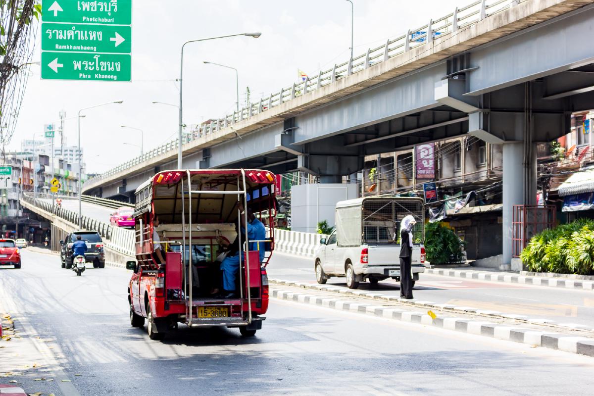 รถสองแถวก็สามารถขึ้นได้ที่เดียวกับป้ายรถเมล์
