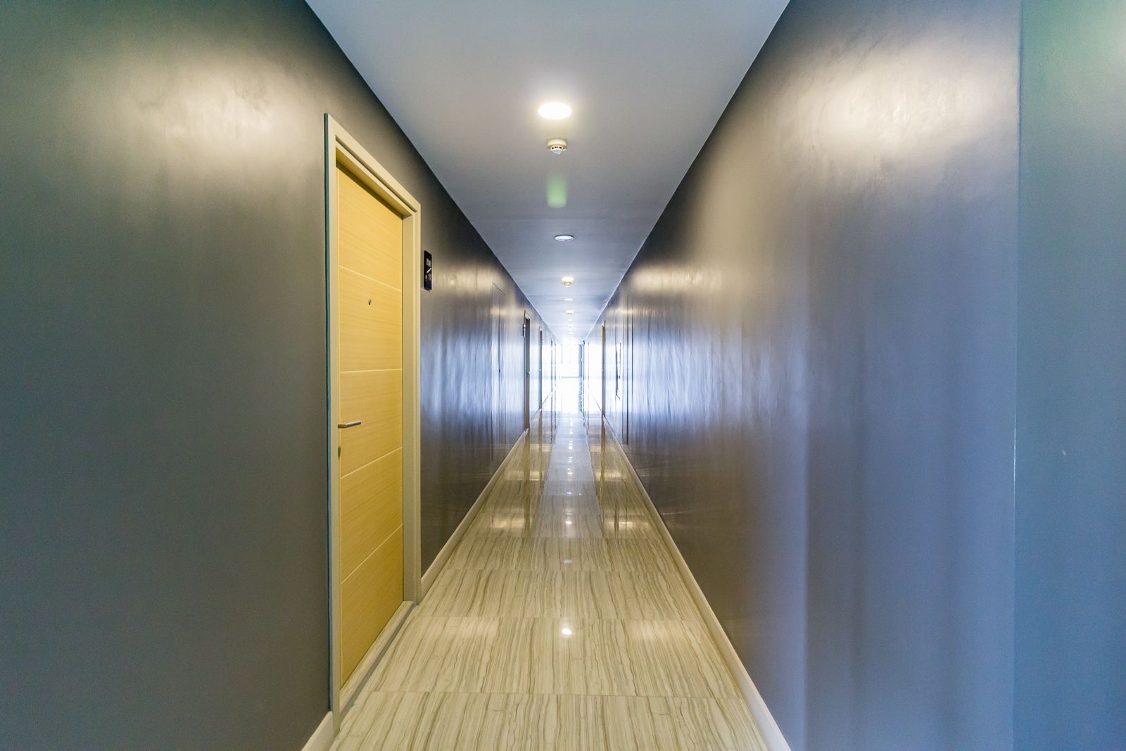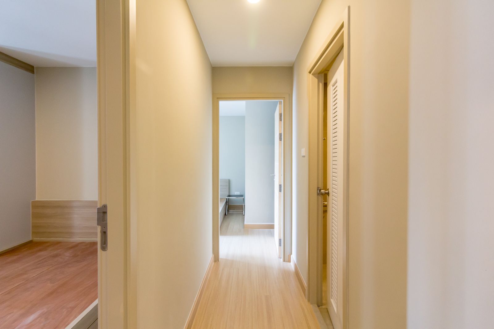 โถงทางเดินยกสูง มีช่องรับแสงที่ปลายทางเดิน ทำให้บรรยากาศภายในคอนโดสว่างไม่อึดอัด