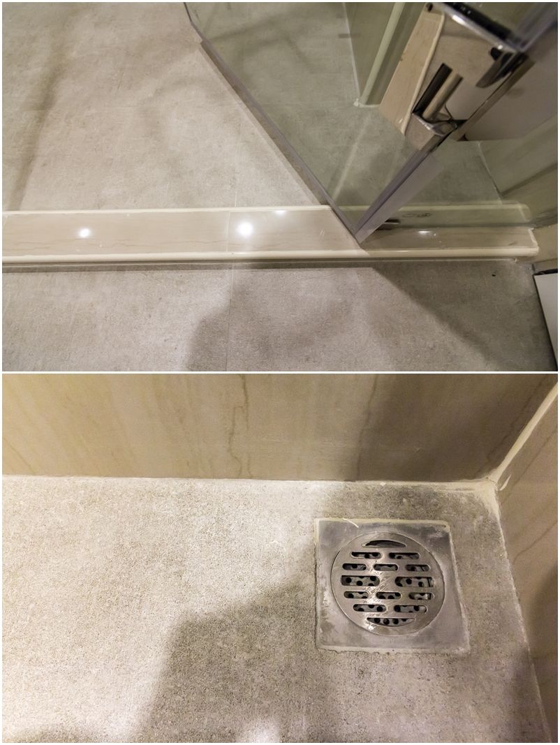 โซนเปียกยกขอบสูง 2 นิ้ว มีท่อระบายน้ำอยู่มุมห้อง