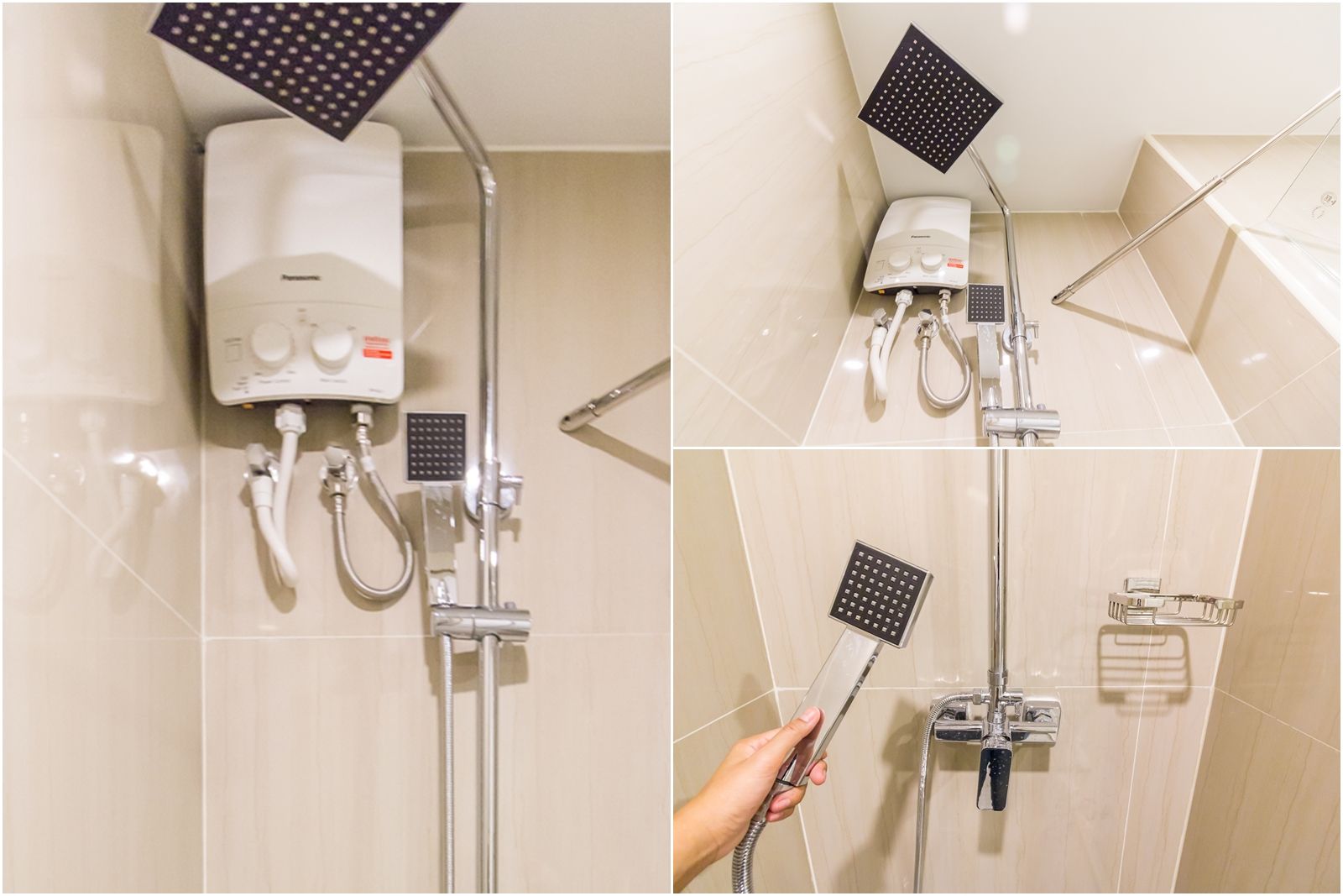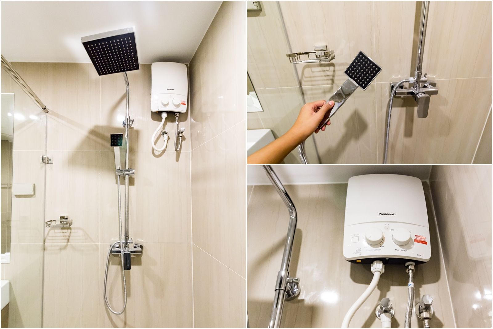 คอนโด the teak พัฒนาการ-ทองหล่อ ติดตั้งให้ทั้งระบบ Rain Shower และ Hand Shower พร้อมกับเครื่องทำน้ำอุ่นของ Panasonic เรียบร้อยพร้อมใช้งาน