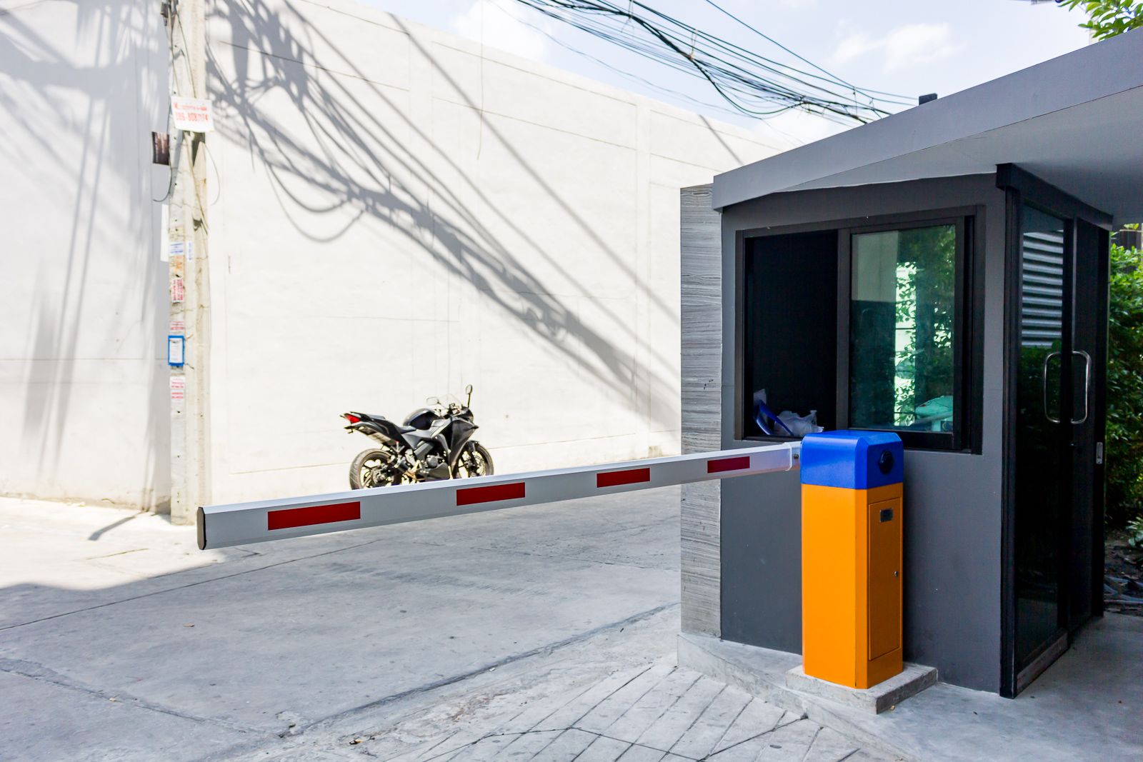 ทางเข้าออกโครงการกั้นด้วยไม้กระดก ใช้คีย์การ์ดควบคุม และมีป้อมยามคอยรักษาความปลอดภัย 24 ชั่วโมง