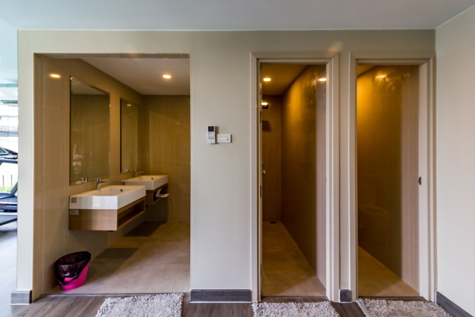 ในห้องฟิตเนสมีห้องน้ำส่วนกลาง แต่จะไม่ได้แยกชายหญิงไว้