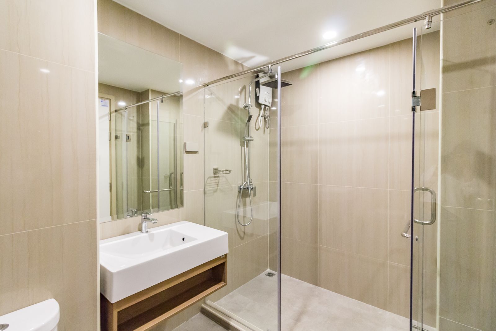 คอนโด the teak พัฒนาการ-ทองหล่อ ติดตั้งระบบ Hand Shower และ Rain Shower พร้อมเครื่องทำน้ำอุ่นให้เช่นกัน