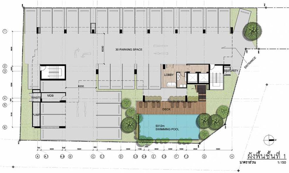 ลานจอดรถยกเพดานสูง ทำให้ไม่อึดอัด มีแสงลอดผ่านเข้ามาได้ ทั้งยังทำทางเดินรถค่อนข้างกว้าง ขับง่าย ช่วยลดการเฉี่ยวชนกัน