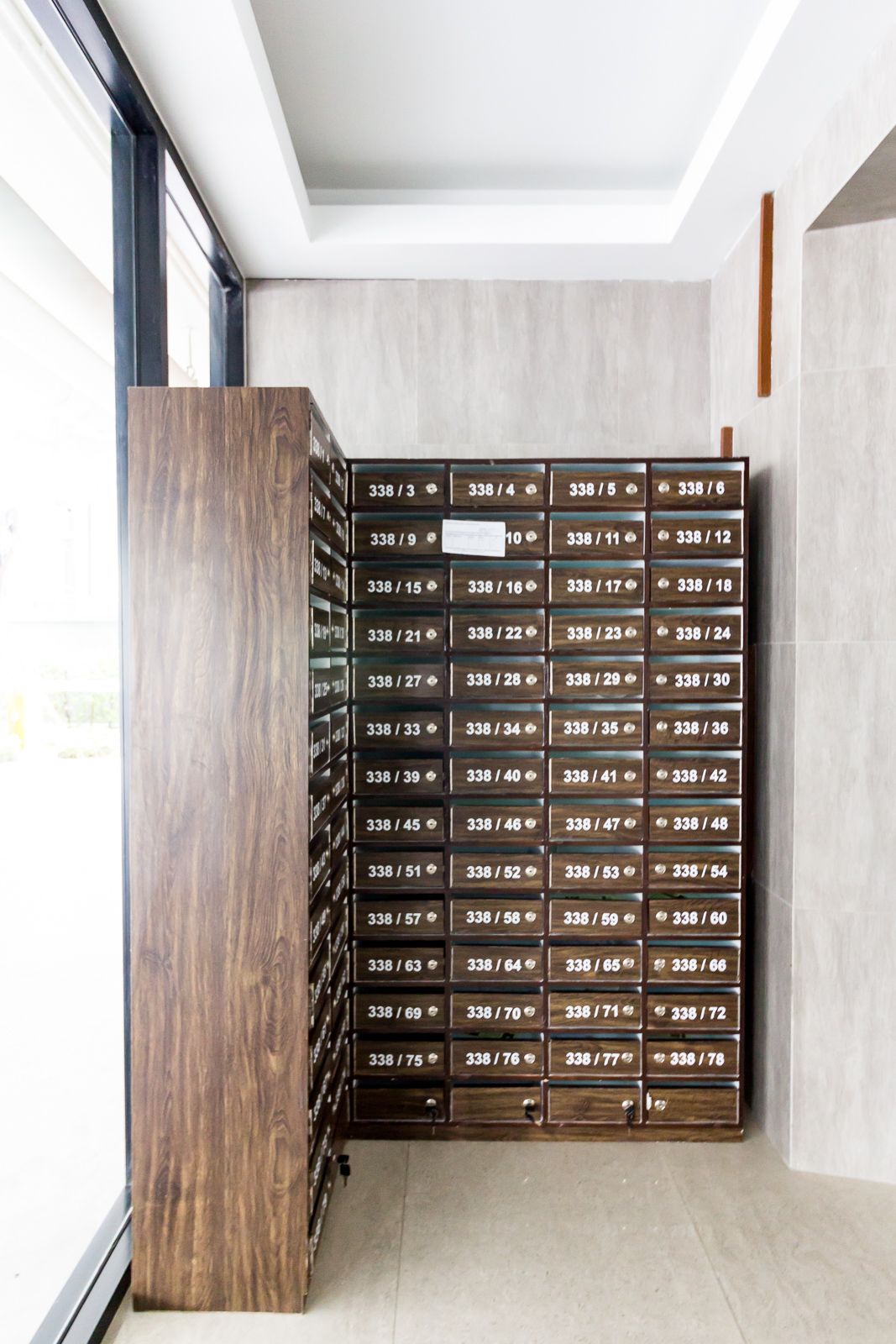 ตู้ล็อกเกอร์อยู่หน้าลิฟต์ สามารถเดินมาดูจดหมายก่อนขึ้นห้องได้