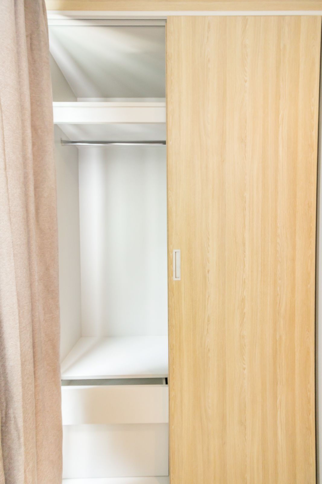 แต่อีกฝั่งจะติดโซนตู้เสื้อผ้าเล็กน้อยแต่ก็ไม่ได้มีปัญหามากมาย เวลาใช้งานเสร็จก็เลื่อนเก็บได้สะดวก