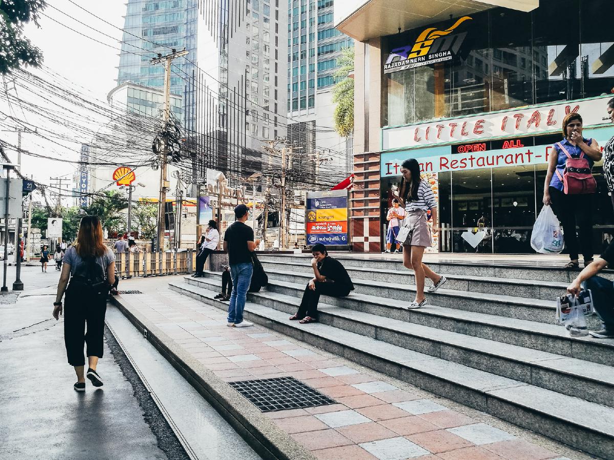 คนไทยทำงานออฟฟิศจะอยู่บริเวณนี้เยอะเช่นกัน เพราะมีอาคารสำนักงานให้เช่าหลายตึก