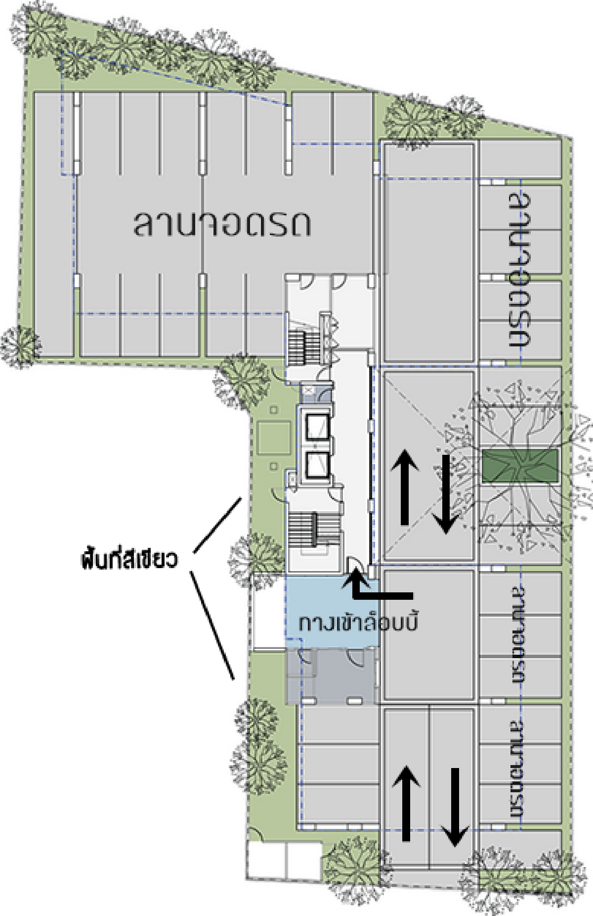 Mater plan ของโครงการ แวร์เด สุขุมวิท 49/15 (Verde Sukhumvit 49/15) ชั้นแรกเป็นพื้นที่ของลานจอดรถและส่วนของล็อบบี้ ซึ่งเป็นทางเข้าของอาคาร ตัวMater plan ของโครงการ แวร์เด สุขุมวิท 49/15 (Verde Sukhumvit 49/15) ชั้นแรกเป็นพื้นที่ของลานจอดรถและส่วนของล็อบบี้ ซึ่งเป็นทางเข้าของอาคาร ตัวอาคารหันหน้าไปทางทิศใต้ เมื่อขับรถเข้ามาจะพบกับโถงทางเดินรถแบบซุ้มลอดผ่านใต้อาคาร ให้อารมณ์เหมือนขับรถเข้าสู่ส่วนของบ้านหลังใหญ่ที่ตกแต่งด้วยสไตล์วินเทจ ที่จอดรถจะเป็นแบบจอดใต้อาคารคิดเป็น 100% หรือ 33 คัน ไม่รวมการจอดแบบซ้อนคัน เมื่อเข้าสู่ตัวอาคารจะเจอกับพื้นที่ล็อบบี้ซึ่งตกแต่งมาในสไตล์แอนทีคให้ความรู้สึกอบอุ่น ผ่านไปเจอโถงลิฟต์สองตัว ให้มาแบบล็อกชั้นเพื่อความปลอดภัยในการพักอาศัย