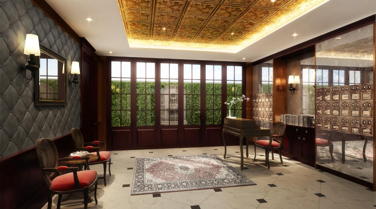 ภาพตัวอย่างของ Elegant Lobby & Corridor พื้นที่ต้อนรับหรูหรา โปร่งสบายพร้อมเฟอร์นิเจอร์สไตล์แอนทีคให้ความรู้สึกอบอุ่น ตกแต่งด้วยกระเบื้องหินอ่อน กรุกระจกโดยรอบเพื่อเพิ่มมิติและแสงสว่าง นอกจากนี้ยังมีให้บริการ Harmonizing the connection เชื่อมต่อทุกองศาของไลฟ์สไตล์แบบไม่สะดุดกับสัญญาณ WiFi ฟรี