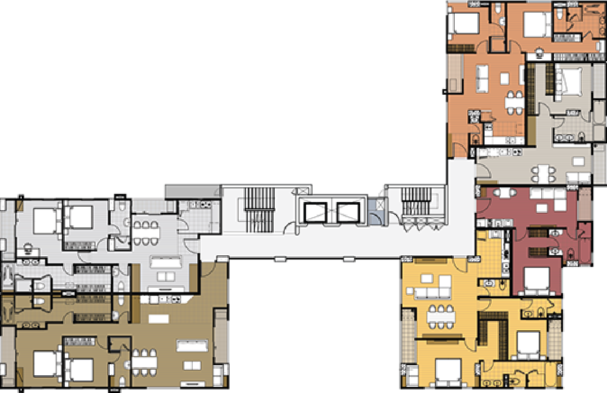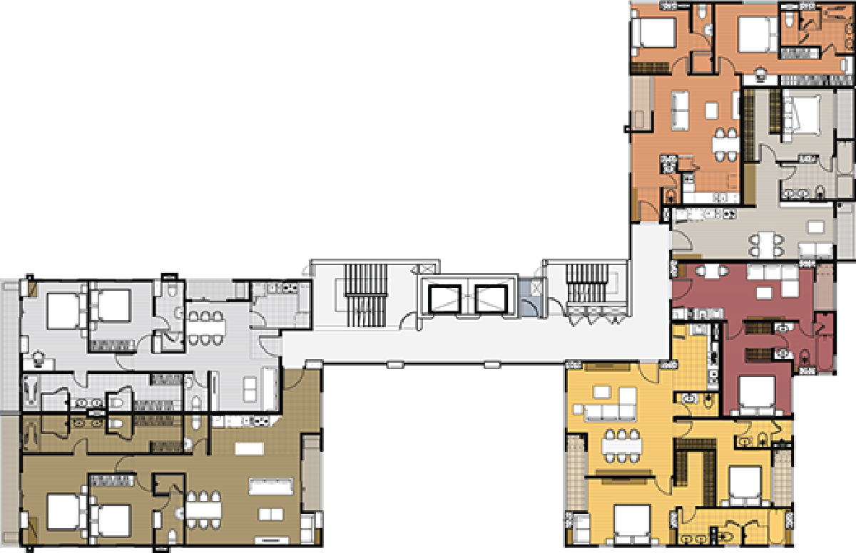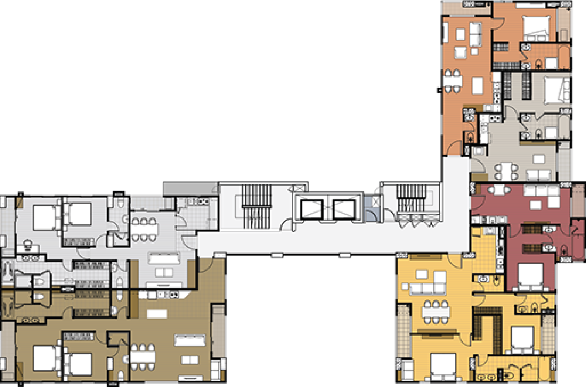 อาคารฝั่งทิศตะวันตก ช่วงกลางอาคารจะเป็นโถงลิฟต์ และด้านข้างจะเป็นยูนิตพักอาศัยมองเห็นวิวได้ 2 ทิศในทุกยูนิต