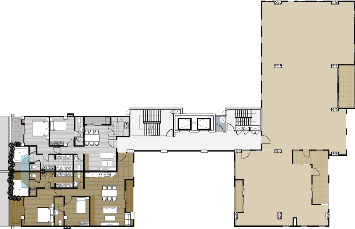 สำหรับพื้นที่บนชั้นสอง จะแบ่งออกเป็นพื้นที่ส่วนกลางอย่างสระว่ายน้ำ ฟิตเนส สตีม และพื้นที่พักผ่อน ชั้นนี้มีจำนวนยูนิตทั้งหมด 3 ยูนิตด้วยกัน เป็นชั้นที่เหมาะสำหรับคนชอบใช้พื้นที่ส่วนกลางเป็นประจำ ถ้าใครชื่นชอบความเงียบสงบอาจจะหลีกเลี่ยงการซื้อห้องในชั้นนี้ หรือเลือกซื้อห้องทางซ้ายมือ (ห้อง 1 BR 76.37 Sq.m. ) ที่อยู่ห่างจากพื้นที่ส่วนกลางมาหน่อยแทน