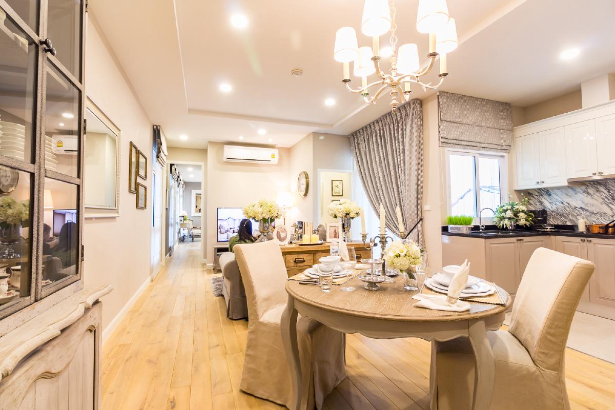 บริเวณส่วนเชื่อมต่อไปยังห้องนั่งเล่นจะเหลือพื้นที่ว่าง กว้างพอให้วางโต๊ะทานอาหารได้สบายๆ
