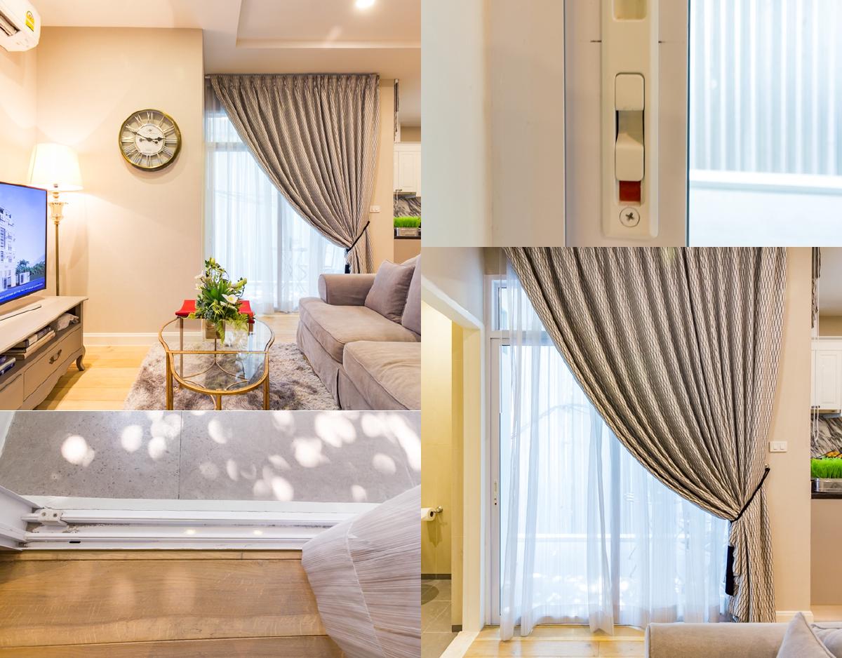 หน้าต่างภายในห้องจะเป็นบานสไลด์ผสมบานฟิกซ์ ออกแบบมาในสไตล์วินเทจเช่นเดียวกัน
