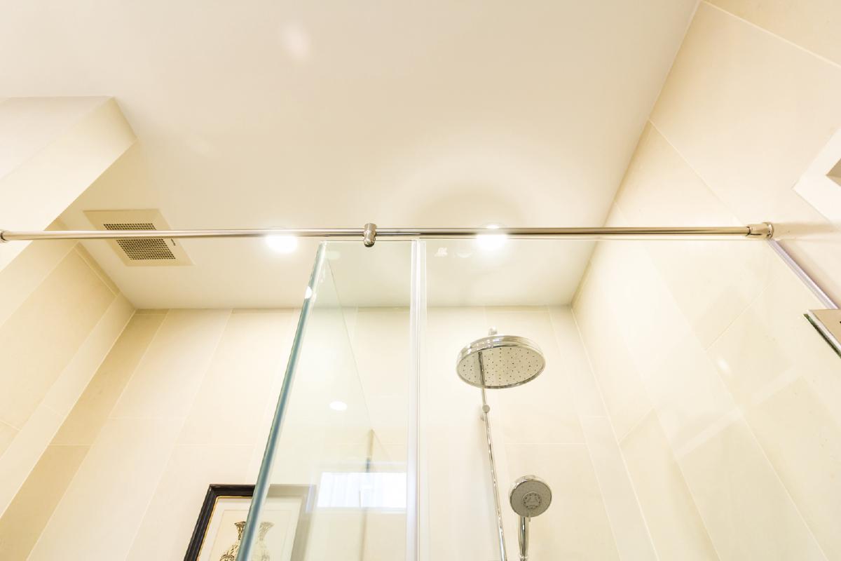 มุมซ้ายของห้องน้ำจะเป็นอ่างอาบน้ำ พร้อมฝักบัว ด้านบนมีช่องแสงเล็กๆ ทำให้ห้องน้ำสว่าง และดูไม่อึดอัดมากจนเกินไป