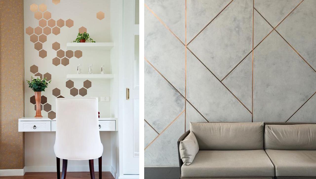 แต่หากรู้สึกว่าการตกแต่งคอนโดด้วยทองแดงทั้งผนังนั้นเยอะเกินไป ก็สามารถลดการใช้งานลงมาได้ โดยนำมาเป็นส่วนหนึ่งของลวดลายแทน ซึ่งยังคงได้ effect ของความเงาที่จะตัดกับพื้นหลังทำให้ ทองแดงยังคงโดดเด่นออกมา