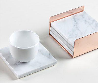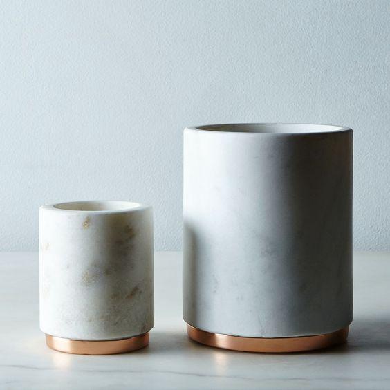 Copper with Marble : ทองแดงเมื่อมาเข้าคู่กับลายหินอ่อนจะมีความเข้ากันเป็นอย่างมาก ทำให้ดูเรียบหรู เนื่องจากสีของหินอ่อนที่เป็นโทนขาว-เทาและมีลวดลายที่ไม่มากหรือน้อยเกินไปนัก ประกอบกับทองแดงที่มีสีออกโทนส้ม อีกทั้งความด้านของหินอ่อนตัดกันได้ลงตัวกับความเงาของทองแดง ทำให้เป็นวัสดุของอย่างที่มักถูกนำมาเข้าคู่กัน