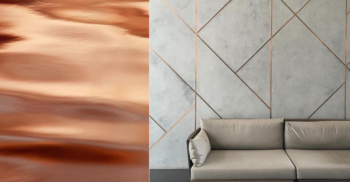 Copper นั้นเหมาะมาก หากใครที่ชอบความเป็น Metallic แต่เบื่อสีทอง กับ สีเงิน แล้ว ทองแดงก็ถือว่าเป็นตัวเลือกที่น่าสนใจ เนื่องจากมีความแปลกใหม่และมีสีสันในตัวเองที่เป็นเอกลักษณ์ ถึงแม้ว่าการนำไปจับคู่กับพื้นผิววัสดุแบบอื่นๆยังมีแบบไม่มากนัก แต่นั้นก็ไม่ได้หมายความว่าจะไม่สามารถทำได้เลย ซึ่งแน่นอนว่าการออกแบบไม่มีกฎตายตัว ซึ่งทำให้คุณสามารถสร้างสรรค์ไปได้เรื่อยๆ และจะทำให้พื้นที่ของคุณเกิดความน่าจดจำขึ้นมาอย่างแน่นอนเลยทีเดียว