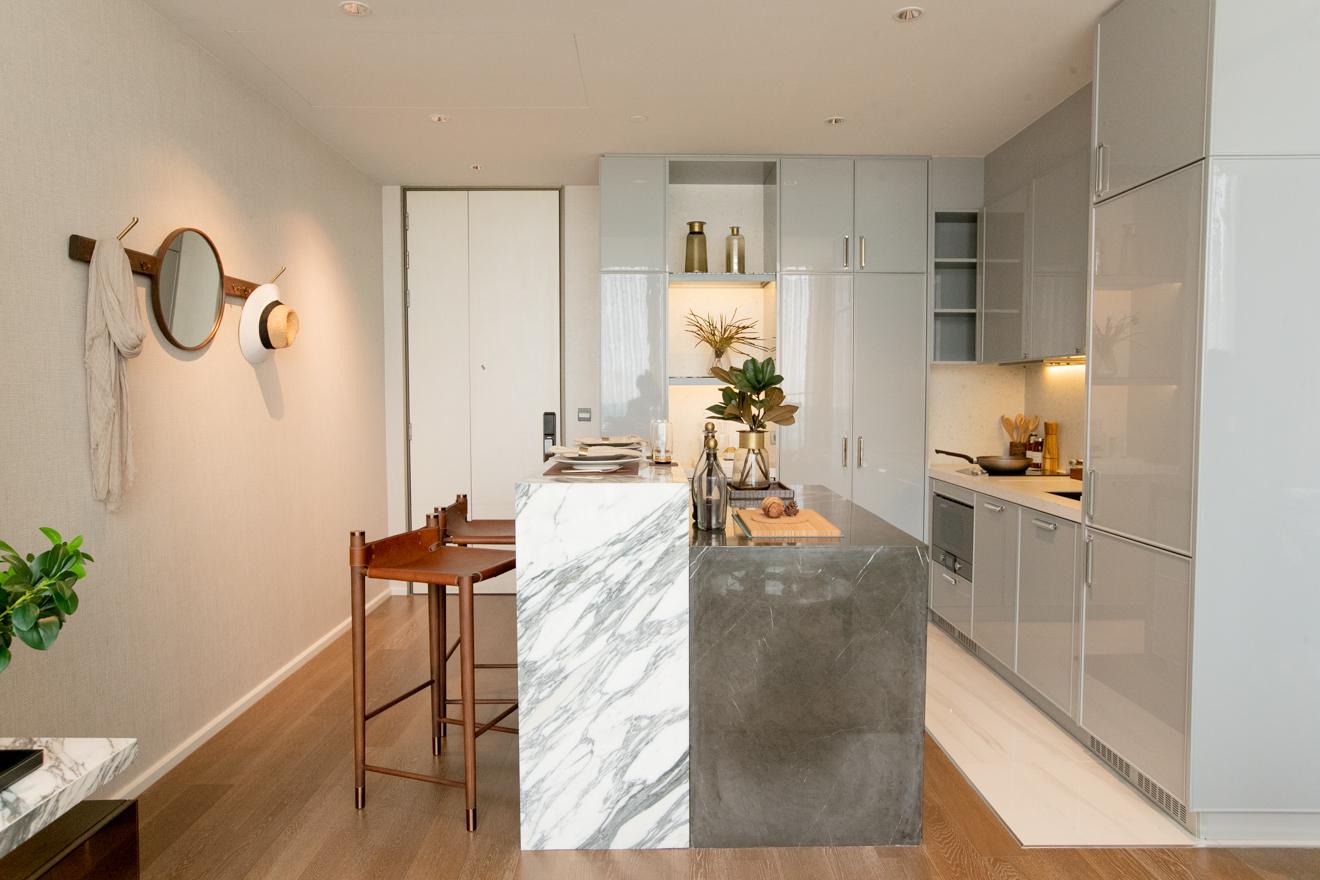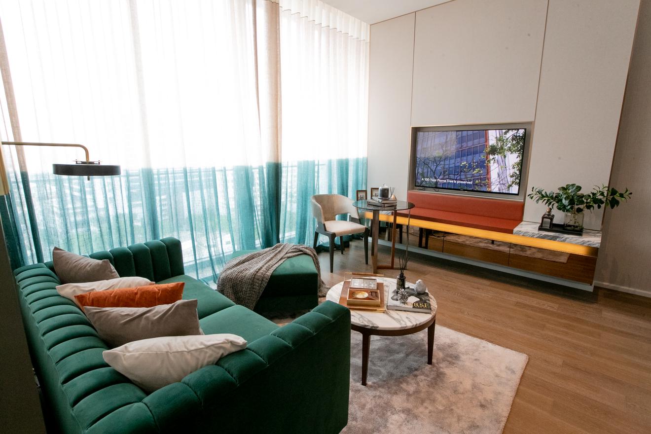ส่วนการออกแบบตกแต่งภายใน ทางโครงการได้ใช้วัสดุที่มีคุณภาพระดับพรีเมี่ยมเพื่อผู้พักอาศัยเป็นอย่างดี ได้แก่ ชุดเครื่องครัว Gaggenau ที่พร้อมเติมเต็มด้วยฟังก์ชั่นที่มาพร้อมประโยชน์ใช้สอยอย่างเต็มที่ให้รู้สึกเหมือนอยู่บ้านได้อย่างแท้จริง
