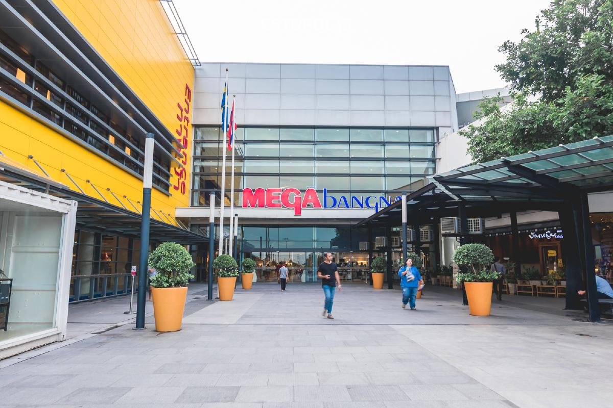 ห้างสรรพสินค้าส่วนใหญ่จะตั้งอยู่บนถนนเส้นบางนา-ตราด เวลาเดินทางมาอาจจะต้องพึ่งพารถยนต์ส่วนตัว รถโดยสารประจำทาง และสำหรับบางห้างจะมี Shuttle bus คอยรับ-ส่ง ยกตัวอย่างเช่น ห้าง MEGA Bangna ที่จะมีบริการรับ-ส่งที่ รถไฟฟ้า BTS อุดมสุข รถจะจอดอยู่บริเวณทางออกที่ 5 ให้บริการ ตั้งแต่เวลา 08.00 - 23.00 น. (ระยะเวลารอ 30 นาทีต่อคัน)