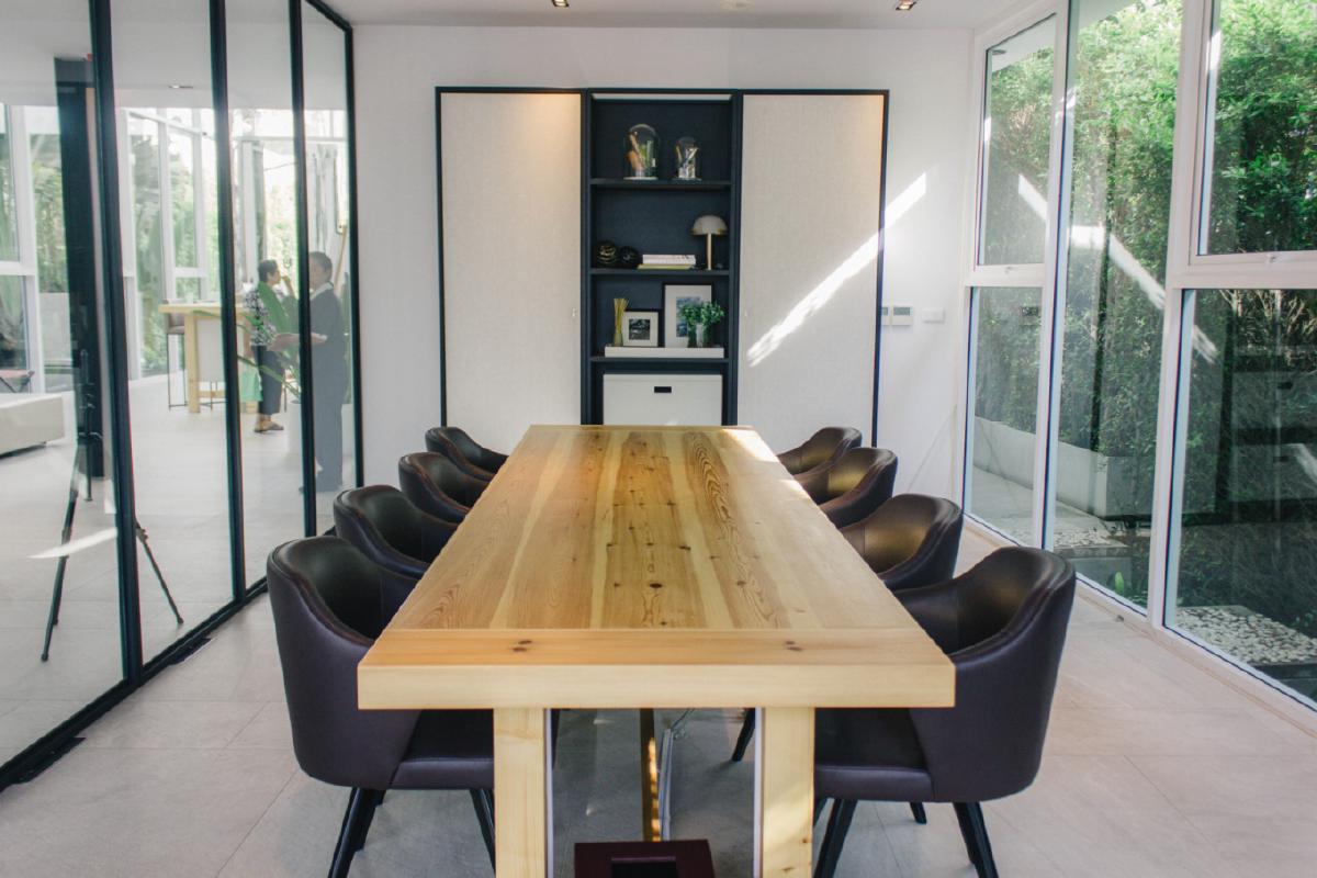 Co-working Space ของ Condo U Kaset-Nawamin มีขนาดกว้างเป็นพิเศษ ตัวห้องกั้นด้วยบานประตูกระจกใสที่สามารถเปิดปิดได้ทุกทางเมื่อลูกบ้านจะเข้าใช้ก็สามารถผลักเข้ามาได้ทุกช่องทาง