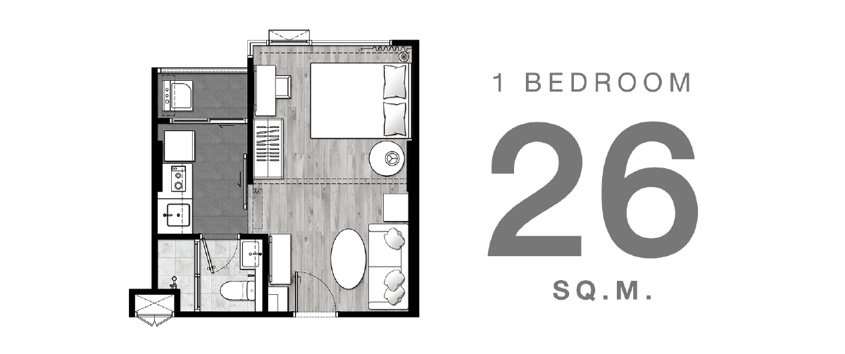 Semi 1 Bedroom พื้นที่ใช้สอย 26 ตร.ม. ราคาเริ่มต้น 1.79 ล้านบาท
