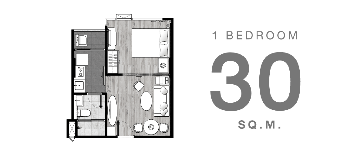 TYPE 2 : 1 BEDROOM 30 SQ.M.