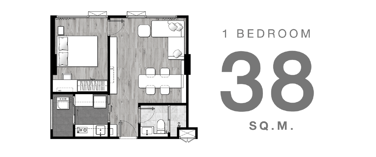 1 Bedroom พื้นที่ใช้สอย 38 ตร.ม.