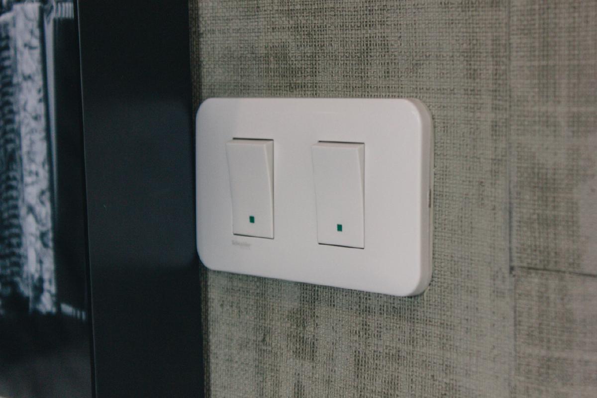 สวิตซ์ไฟเป็นแบบมาตรฐานอยู่ใกล้กับประตูทางเข้าของห้อง