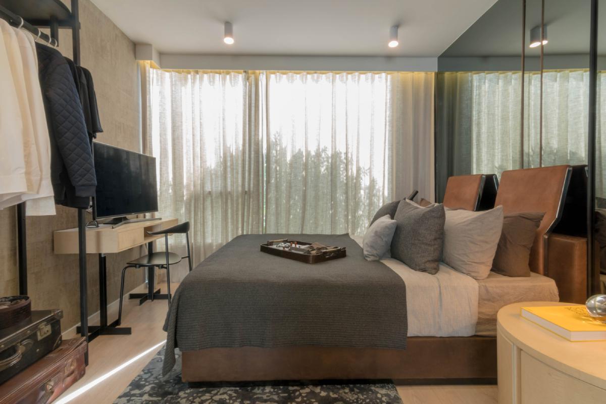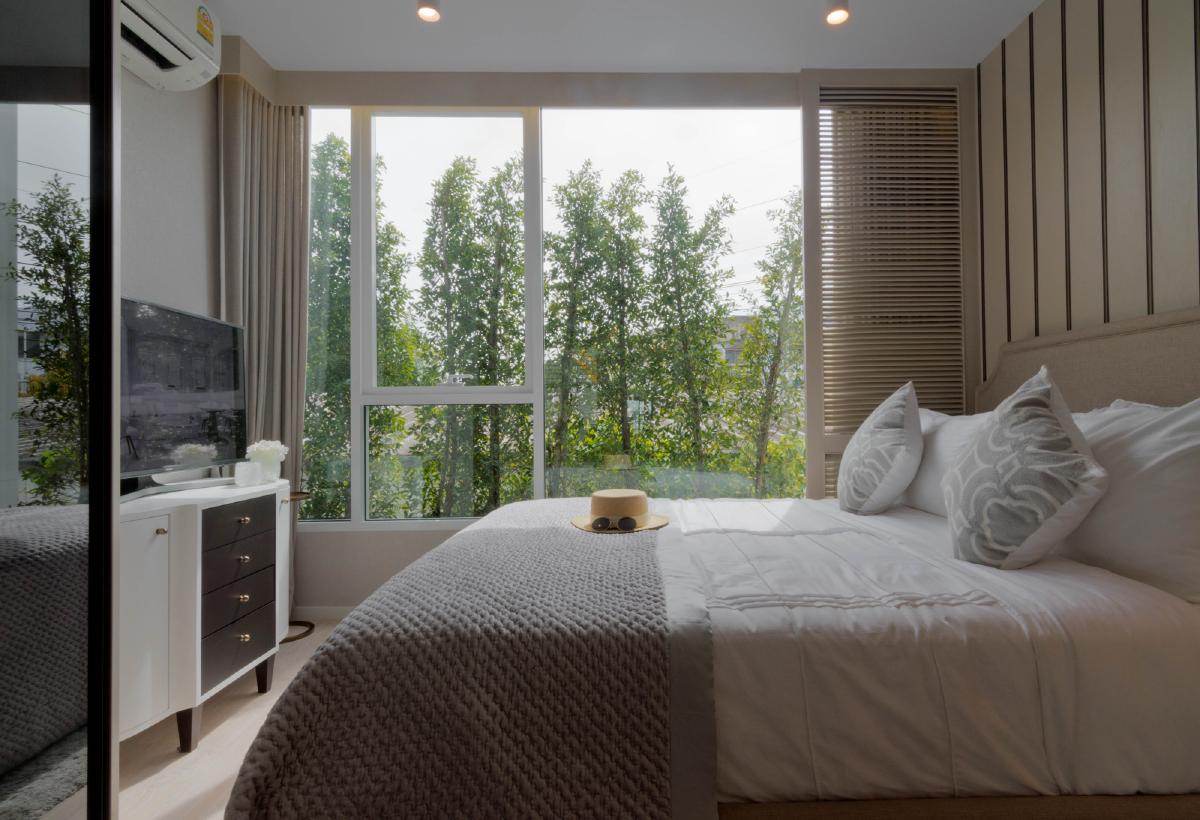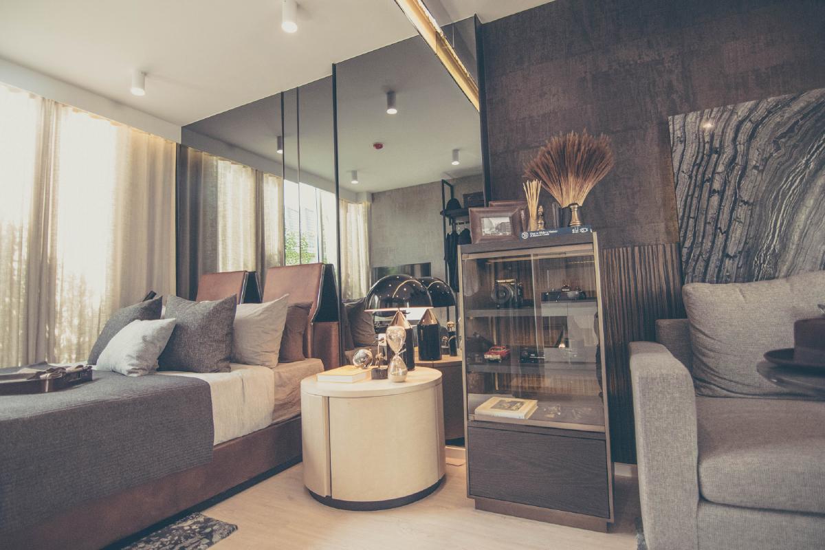 ห้องตัวอย่าง 1 bedroom 30 ตร.ม. มีความหรูให้ความรู้สึกอบอุ่น ภายในห้องตกแต่งด้วยการกรุผนังไม้โทนอ่อนประกอบกับกระจกของห้องที่ช่วยดึงแสงจากข้างนอกเข้ามาทำให้ห้องดูสว่าง กว้างและน่าอยู่เหมาะแก่การพักผ่อน ห้องจริงเป็นแบบ Fully Fitted