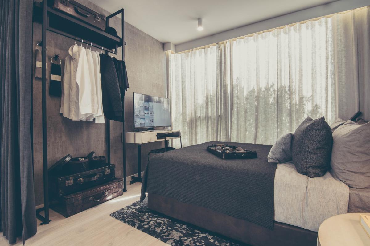 ห้องตัวอย่างขนาด 26 ตร.ม.มีกลิ่นอายการตกแต่งสไตล์ลอฟท์ หากเป็นผู้ชายก็เป็นผู้ชายลุคเข้ม ถ้าเป็นหญิงสาวก็จะเป็นผู้หญิงในมาดเท่ หรือกลุ่ม LGBT ที่มีความเป็นศิลปินที่มีโลกส่วนตัวเป็นของตัวเอง (ห้องจริงขายแบบ Fully Fitted )