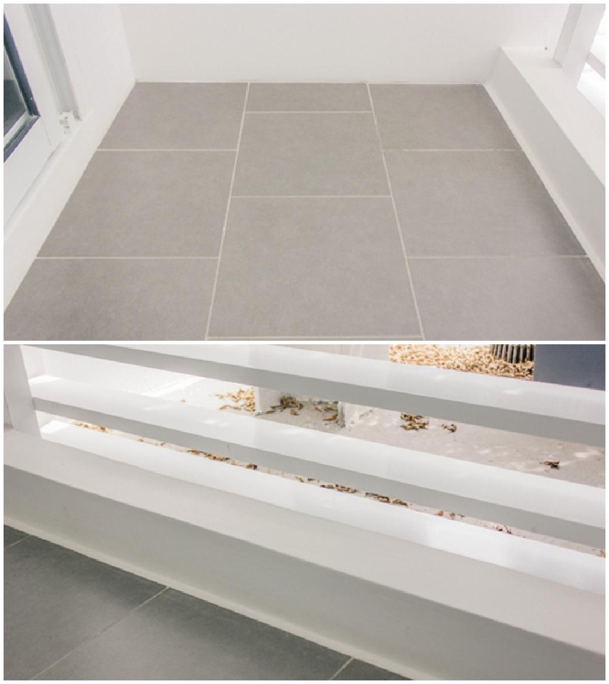 ด้านนอกพื้นเป็นพื้นกระเบื้องสีเทาขนาด 30x30 ซม. ด้านนอกระเบียงกว้าง 180x90 ซม. ขอบระเบียงเป็นพริลขนาด 160x10 ซม. ที่สูงชนเพดานทำให้คนด้านนอกไม่สามารถมองเห็นผู้อาศัยที่อยู่ข้างใน สำหรับการตากผ้าในระเบียงเนื่องจากพริลของระเบียงมีช่องให้ลมพัดเข้ามาจึงไม่เป็นปัญหาในเรื่องของผ้าไม่แห้ง สำหรับขอบระเบียงสูง 10 ซม.มีข้อดีคือเมื่อมีของหล่นหรือกลิ้งลงบนพื้นระเบียงของจะไม่ตกหล่นลงไปด้านล่างอาคาร