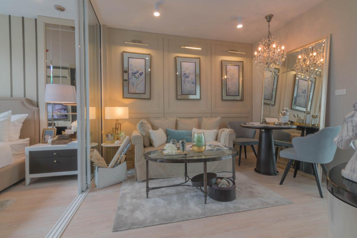 ภาพรวมของห้องตัวอย่างขนาด 30 ตร.ม. ค่อนข้างกว้างและดูเป็นสัดส่วนมากกว่าห้องขนาด 26 ตร.ม. มีแอร์ให้ 2 เครื่อง ส่วนโถงห้องนั่งเลนหากเป็นห้องจริงจะค่อนข้างกว้างมากพอสมควรเพราะไม่มีเฟอร์นิเจอร์เหมือนห้องตัวอย่าง เหมาะสำหรับคนที่ชอบแต่งห้องและอยากออกแบบที่อยู่ตามไลฟ์สไตล์ของตัวเอง สำหรับห้องตัวอย่างนี่เป็นเพียงไอเดียเท่านั้น