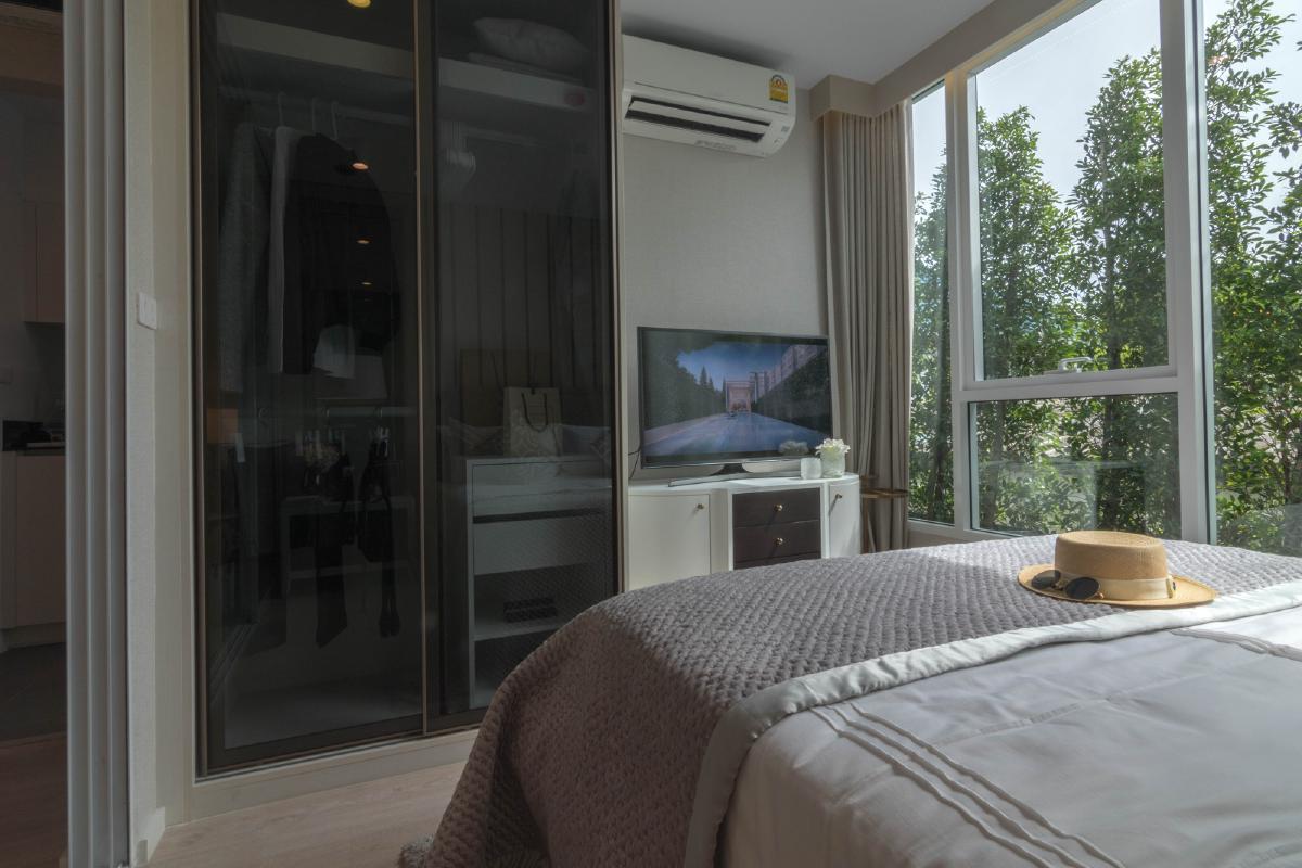 มาดูกันต่อที่ห้องนอน แม้ขนาดห้องจะมีขนาด 26 ตร.ม. แต่ทางโครงการนั้มมีการจัดสรรพื้นที่ใช้สอยของห้องให้ดูลงตัว ไม่แคบ เมื่อวางเตียงขนาด 5 ฟุตเข้าไป ห้องก็ยังคงดูไม่อึดอัด