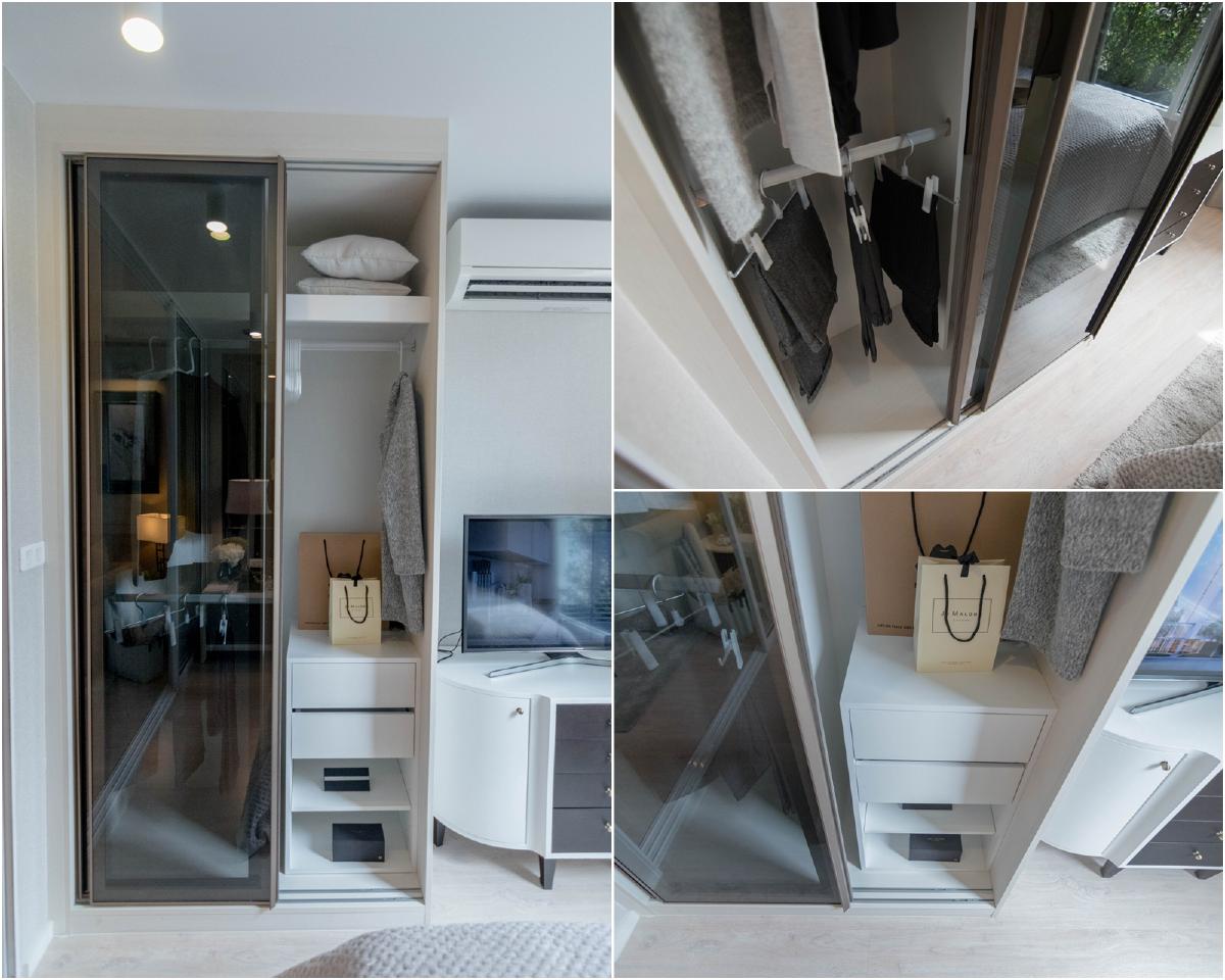 สำหรับตู้เสื้อนั้นห้องขนาด 30-38 ตร.ม.ทางโครงการแถมมาให้ซึ่งห้องขนาด 26 ตร.ม.จะไม่มี รูปแบบของตู้เสื้อผ้าเป็นประตูกระจกสีชาเลื่อนได้ทั้ง 2 บาน ฝั่งซ้ายของตู้เป็นราวแขวนบนและล่าง ฝั่งขวาด้านบนเป็นราวแขวน ข้างล่างเป็นลิ้นชัก ด้านบนสุดเป็นชั้นเก็บของสามารถเก็บหมอนและผ้าห่มได้