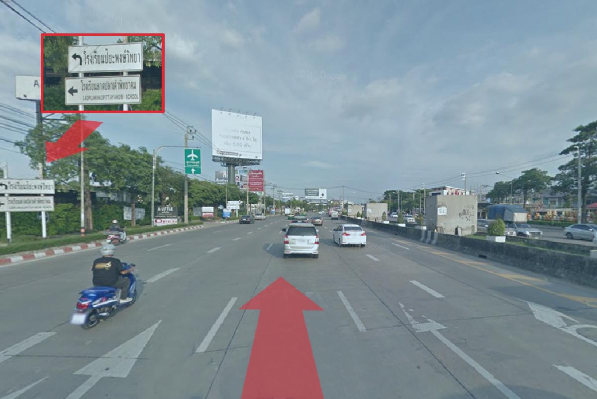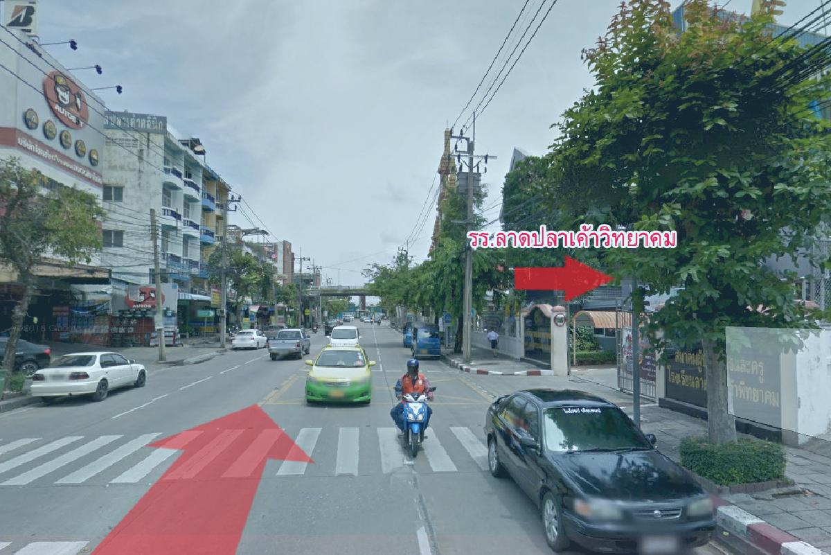 จากนั้นให้เลี้ยวซ้ายมุ่งหน้าสู่ถนนลาดปลาเค้า
