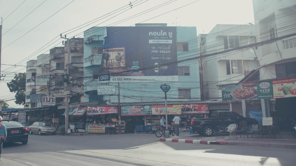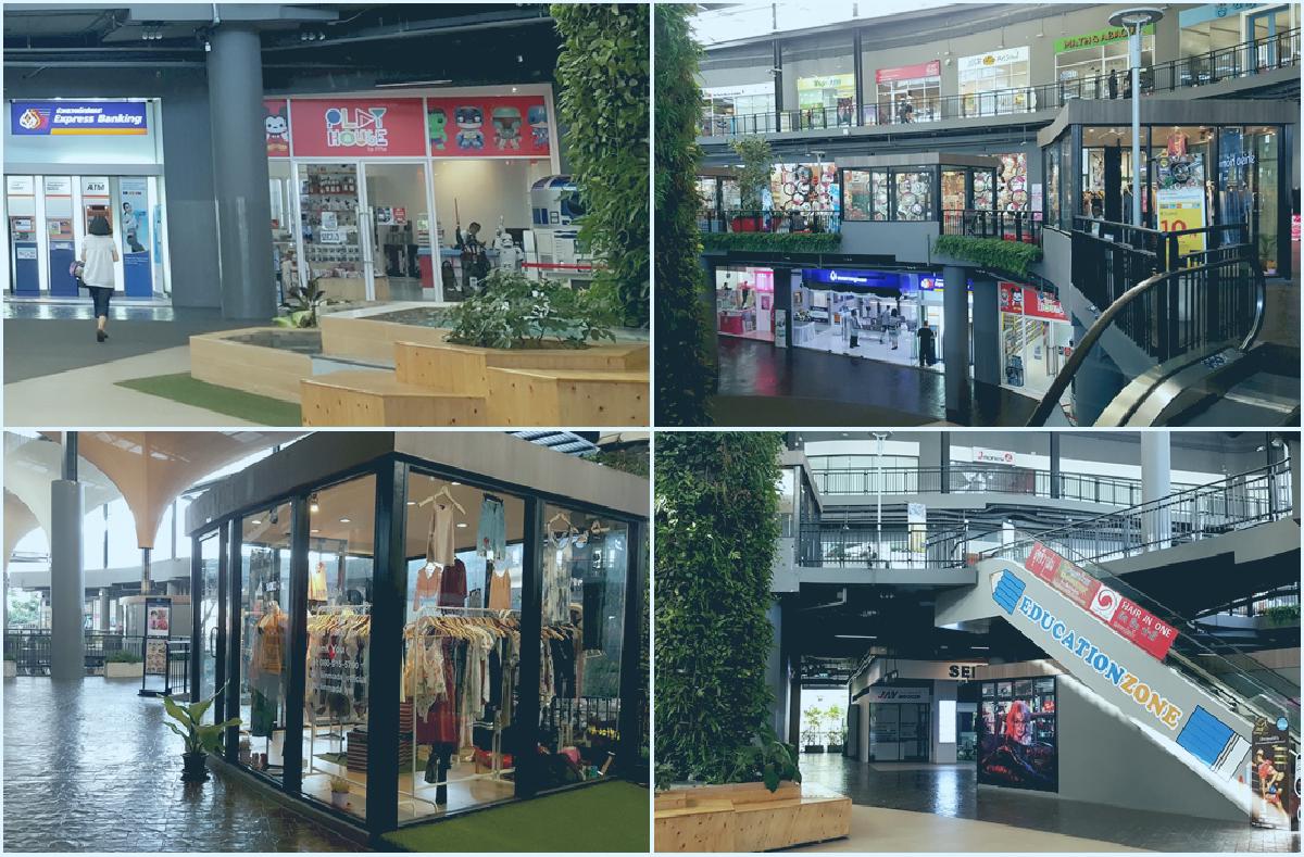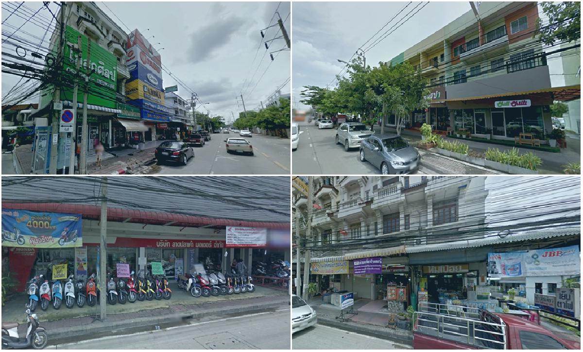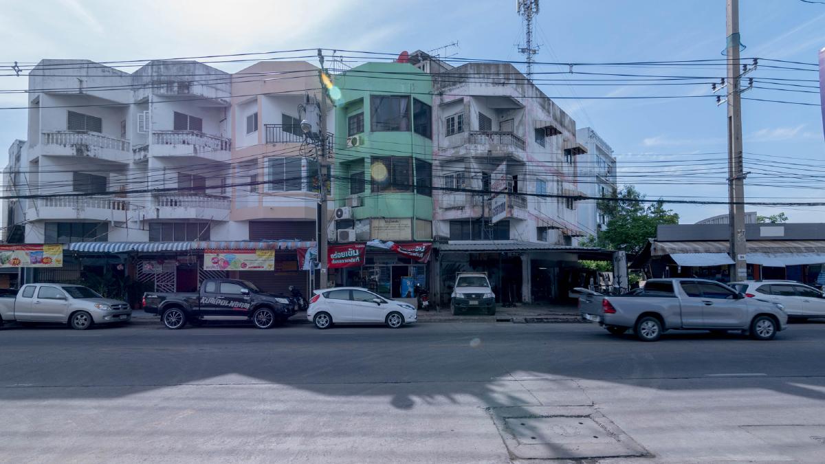 ด้านหน้าโครงการเป็นอาคารพาณิช 4 ชั้น มีทั้งร้านขายของชำและร้านซ่อมรถ