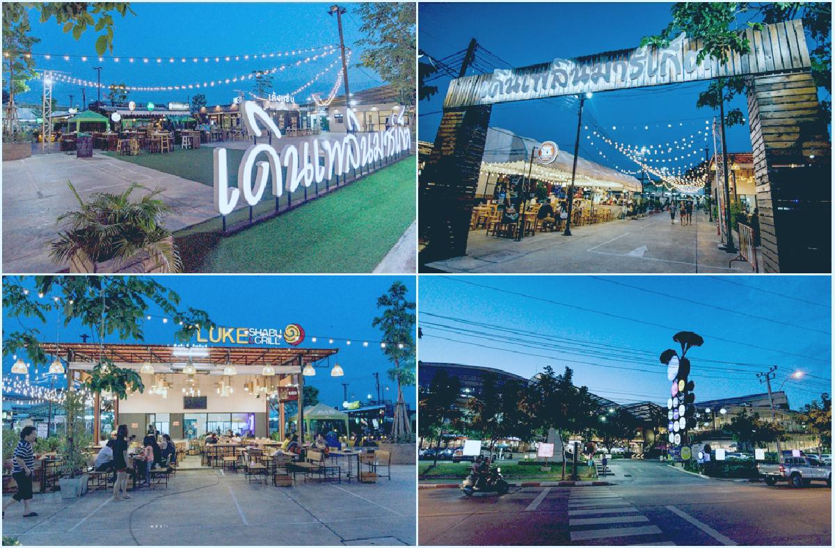 บรรยากาศในยามดึก ตลาดเดินเพลินมาร์เก็ตมีการตกแต่งไฟอย่างสวยงาม เรียกได้ว่าอิ่มท้องแถมยังได้ฟินกับบรรยากาศการกินข้าวนอกบ้านอีกด้วย
