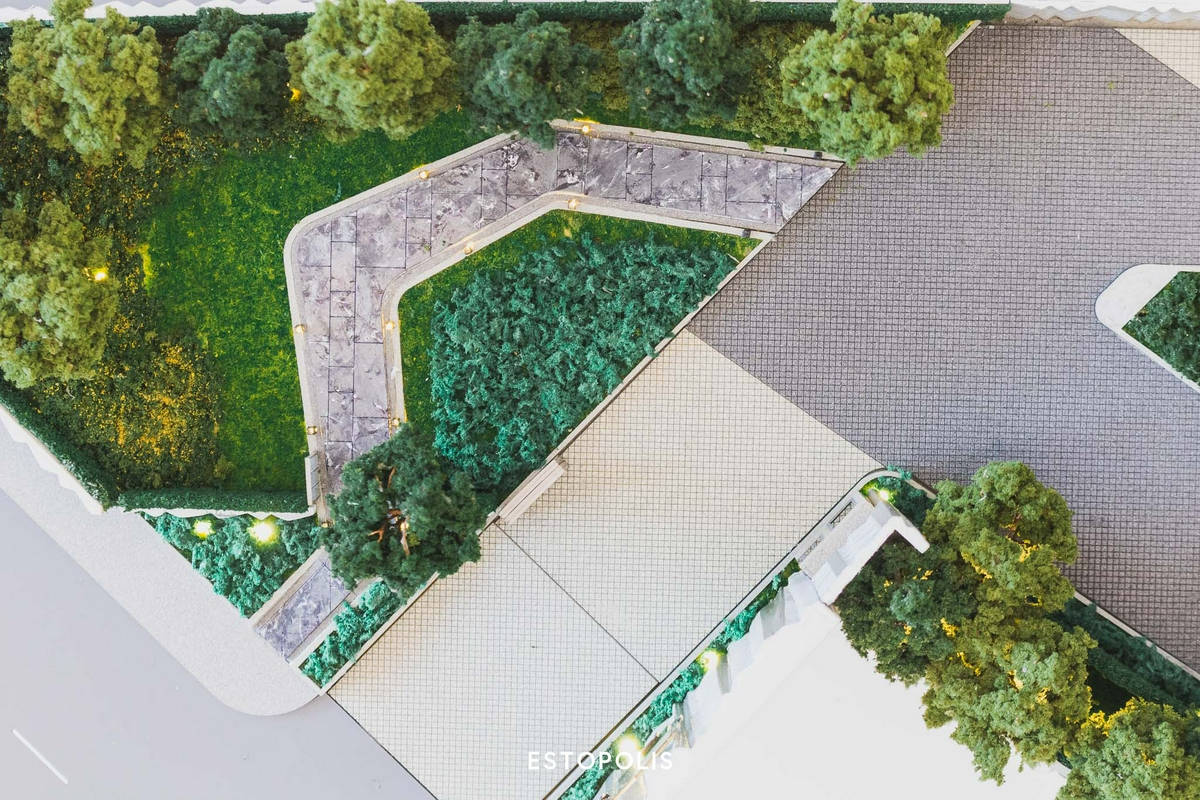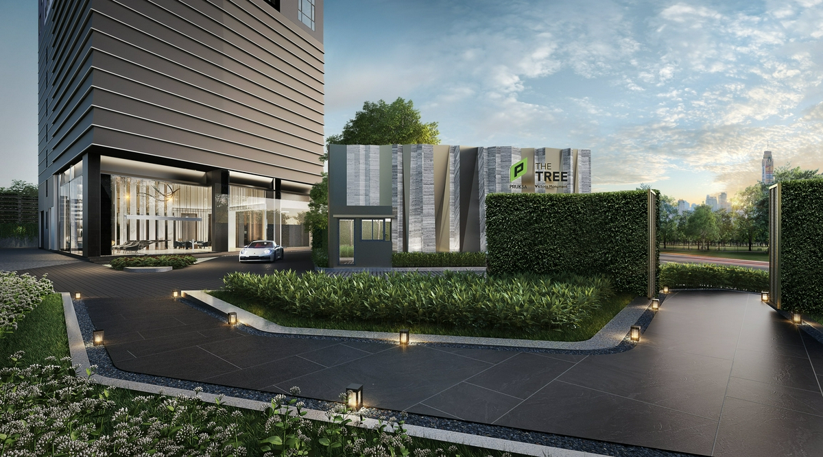 เมื่อเลี้ยวเข้ามาภายในโครงการ เราจะเจอกับ Serene Front Yard สวนสีเขียวที่คอยต้อนรับเราอยู่บริเวณด้านหน้าโครงการ ให้ความรู้สึก frash และสดชื่น สมกับชื่อโครงการ The Tree เลยทีเดียว