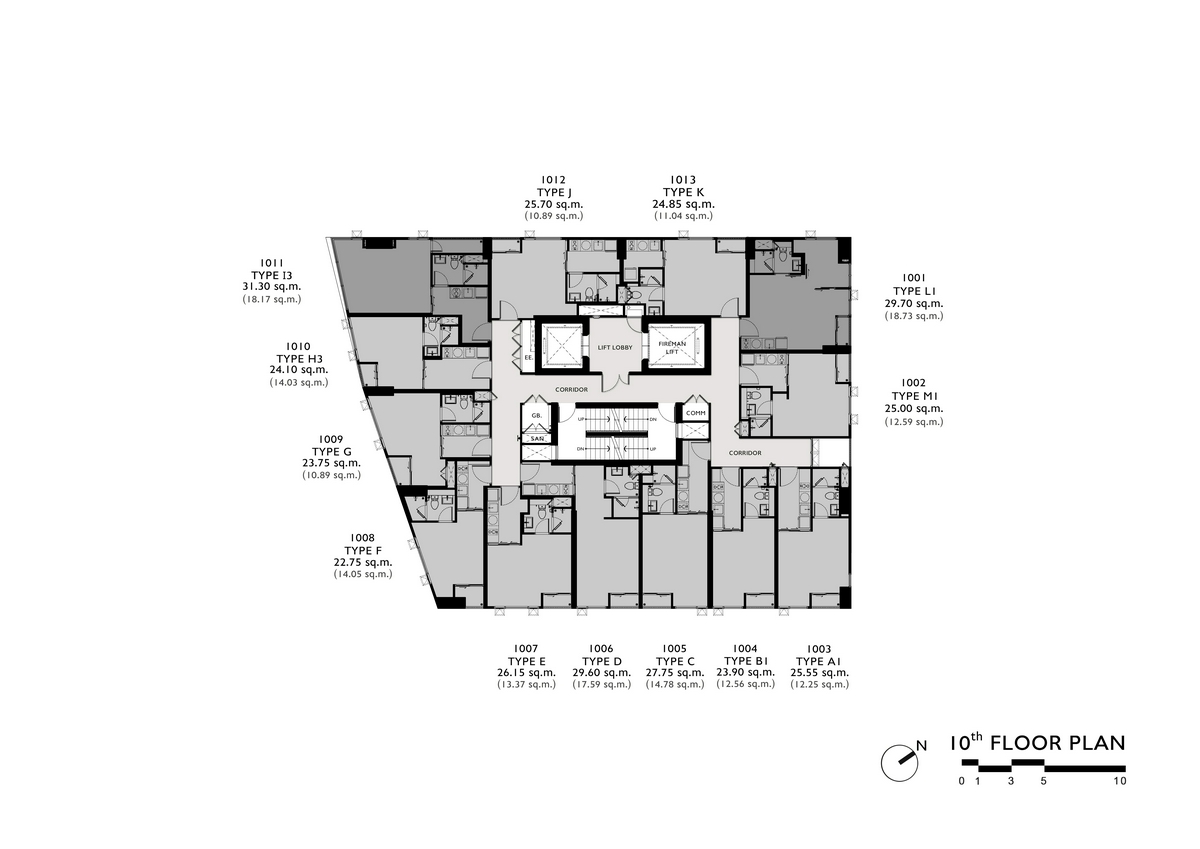 - Duplex 1 Bedroom : 38-39 SQ.M.
