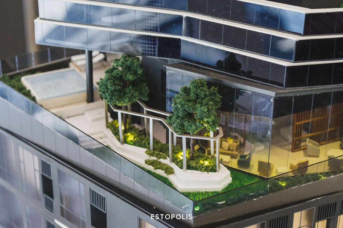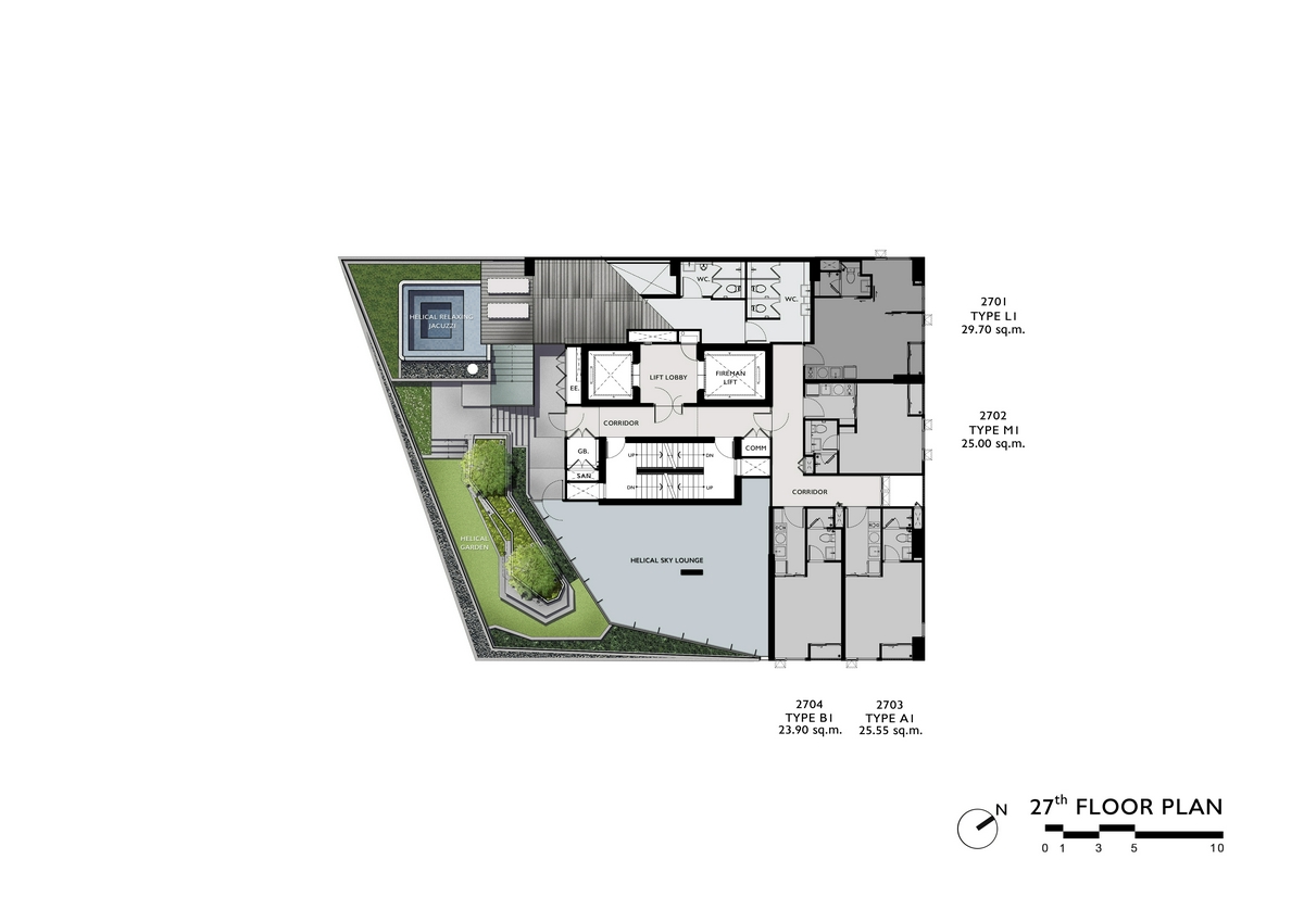 เริ่มต้นกันที่ Facilities ชั้น 27 ชั้นบนสุดของโครงการ The Tree Victory Monument ที่ประกอบไปด้วย Helical Garden, Helical Sky Lounge, Helical Relaxing Jacuzzi ส่วนอีกฝั่งจะเป็นห้องชุดพักอาศัยจำนวน 4 ยูนิต ที่แยกสัดส่วนพื้นที่กันชัดเจน เพื่อความสงบของลูกบ้าน